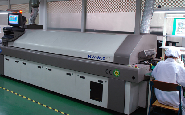 無鉛八溫區(qū)熱風回流焊設備,用于表面貼裝基板的整體焊接,整機采用計算機控制,具有Win2000操作界面和豐富的軟件功能、具有自動傳送的隧道式結(jié)構(gòu),由多預熱區(qū)、焊接區(qū)、風冷區(qū)組成,全熱風加熱方式,上、下溫區(qū)獨立熱源,各加熱區(qū)單獨PID控溫,具有通訊控制的無級調(diào)速功能。